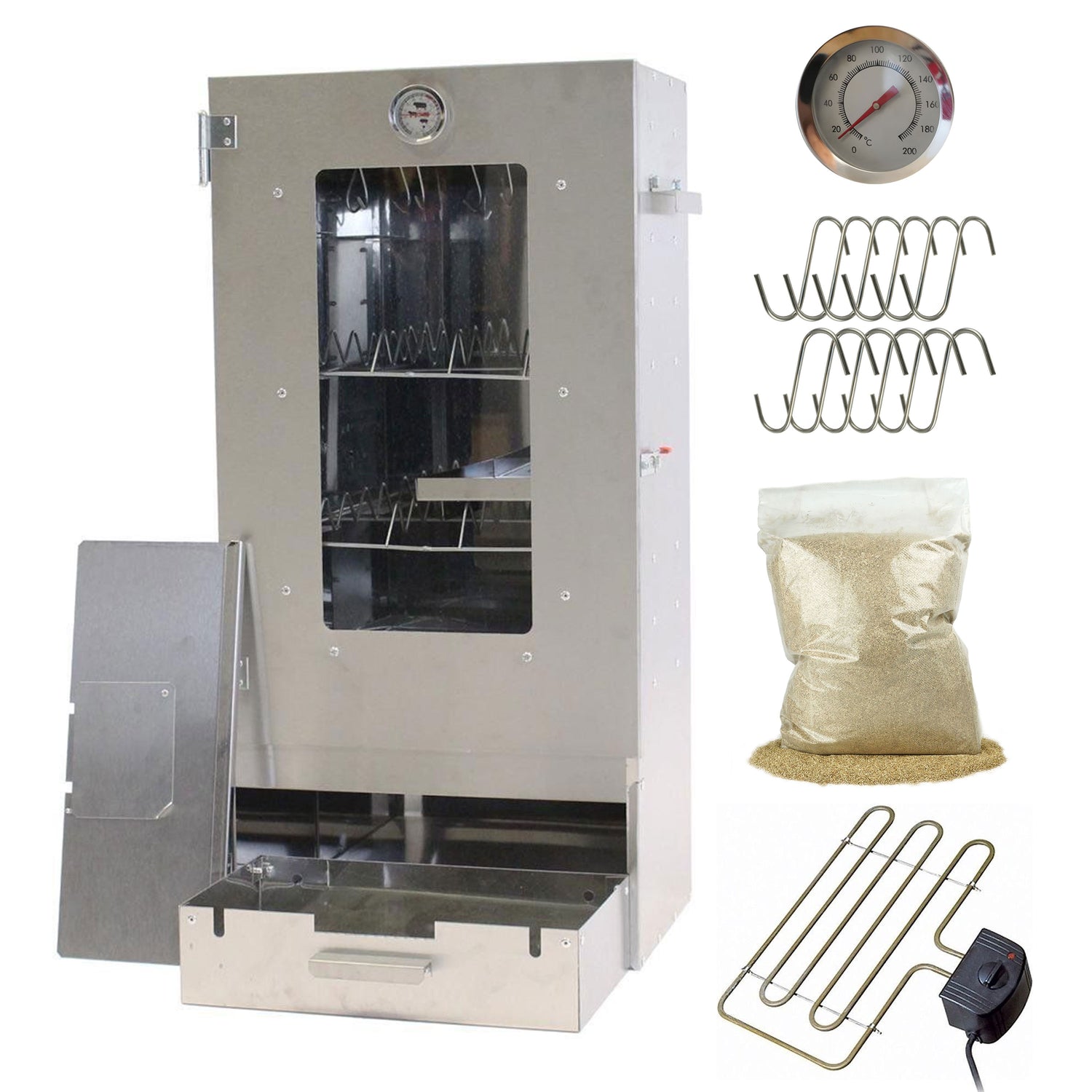- Der Räucherofen wird inklusive Thermometer geliefert.