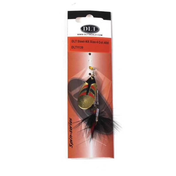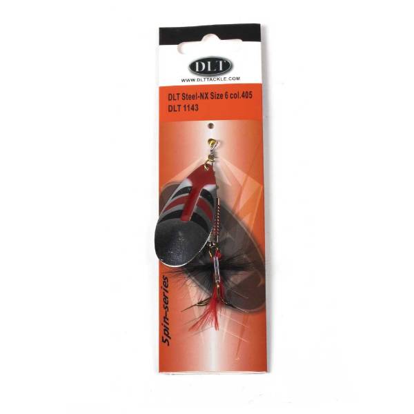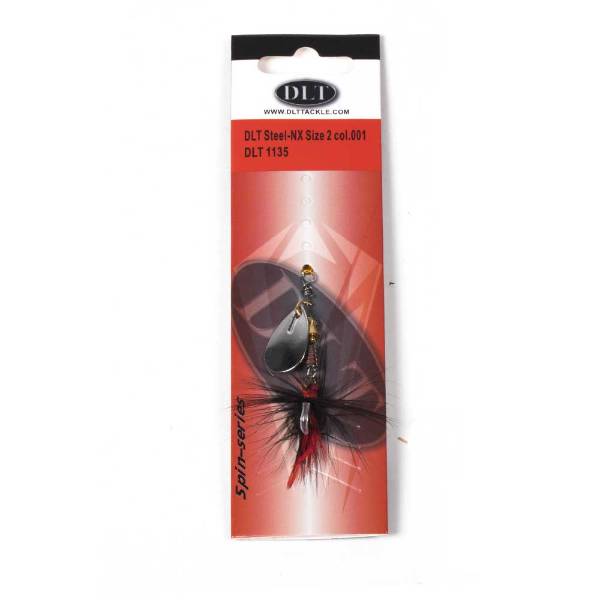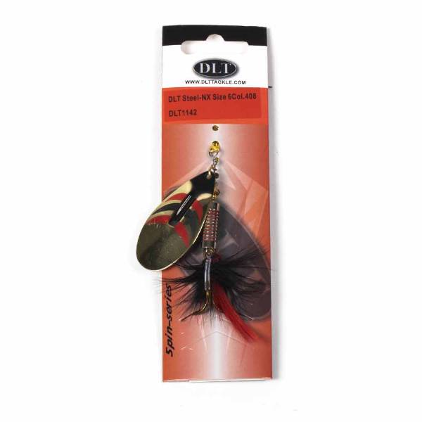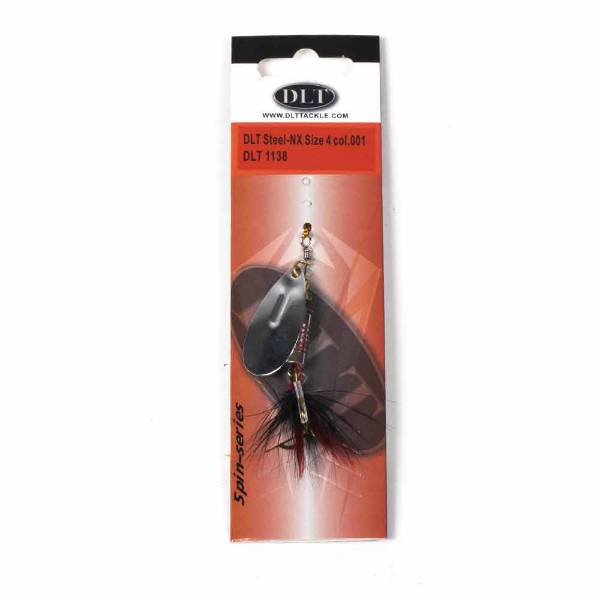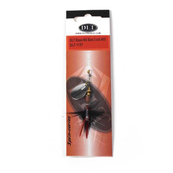 Der DLT Steel-NX Spinner, entwickelt mit Dick Langhenkel, besitzt ein Stahl-Spinnerblatt und einen gewichteten Körper für weite, präzise Würfe. Die Federn über dem Drillingshaken sorgen für extra Anziehungskraft auf Raubfische.