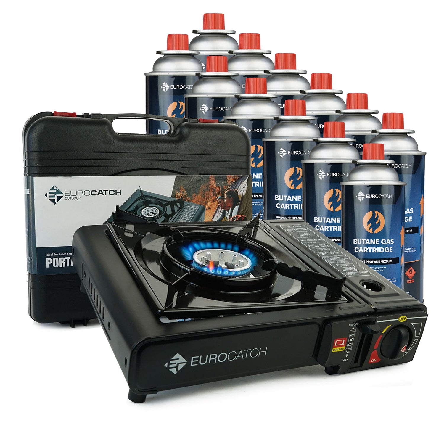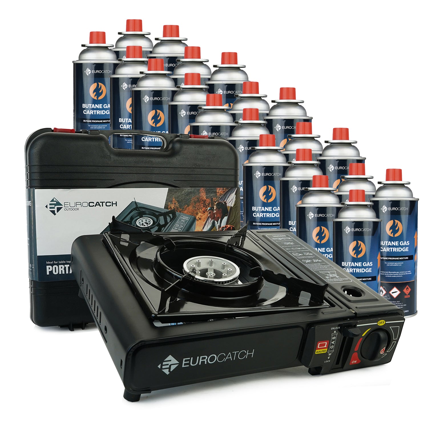 Eurocatch Outdoor Gaskocher mit wahlweise 4/8/12/16/20 Gaskartuschen – Kompakt, leistungsstark und sofort einsatzbereit